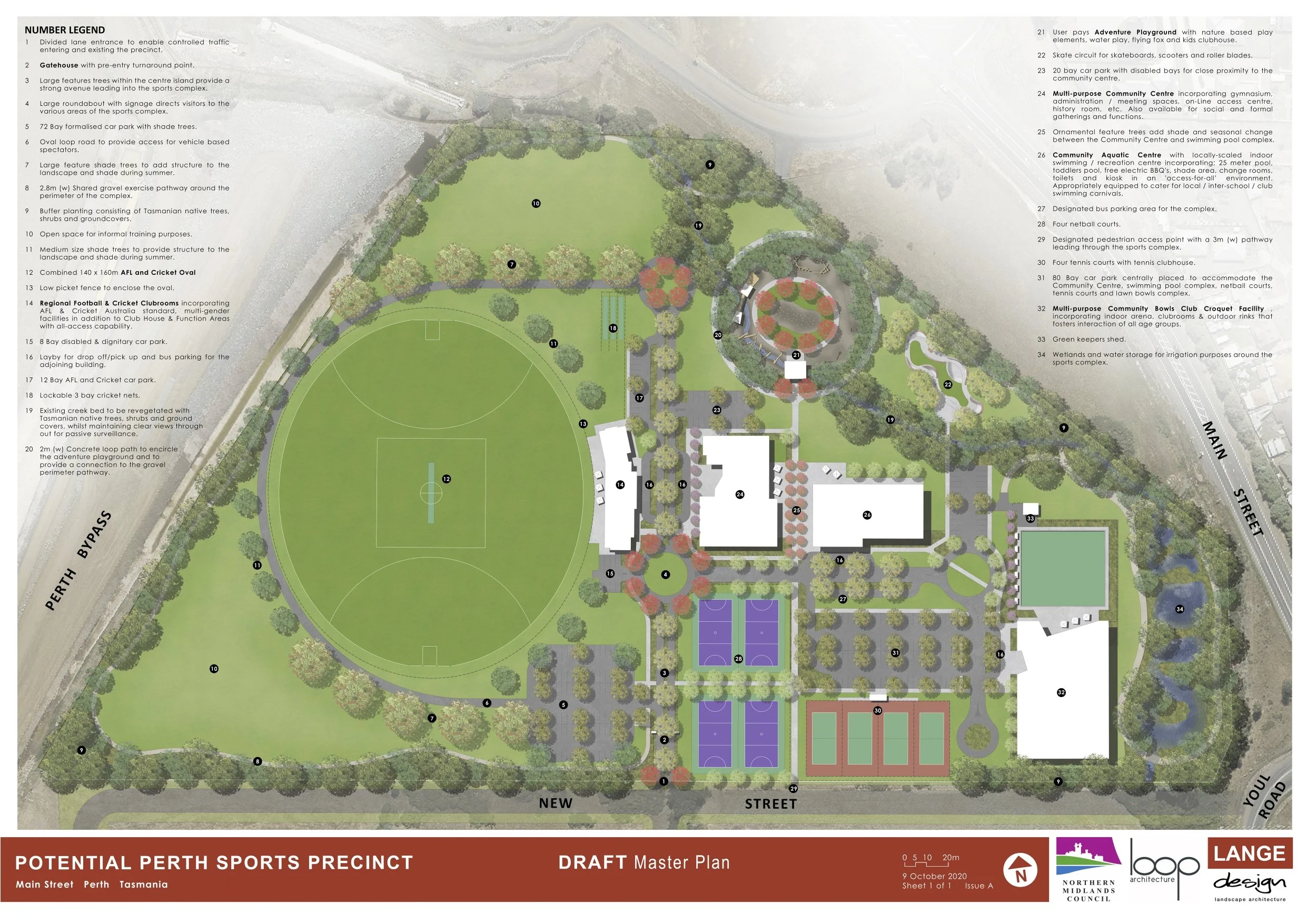 It will include an oval, netball courts, aquatic centre, tennis courts, soccer field, skate circuit, indoor and outdoor sports arenas, adventure playground, clubrooms, cricket practice facility, an exercise pathway and car parking.